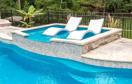 This pool offers it all: a splash pad with built-in spa and a generous swimming pool area with a classic rectangle pool design. Your home will be the place to be in the neighborhood. An incredible inground composite fiberglass swimming pool that showcases what the good life is all about.